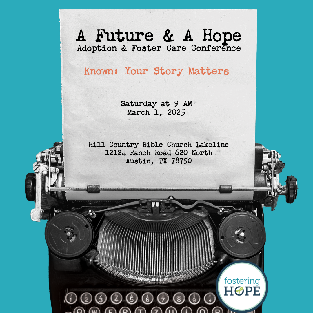 Hill Country Bible Church Lakeline 12124 Ranch Rd 620 N, AustinKnown: Your Story Matters—Celebrate and empower foster, adoptive, kinship families, and aged-out youth by honoring every unique story.